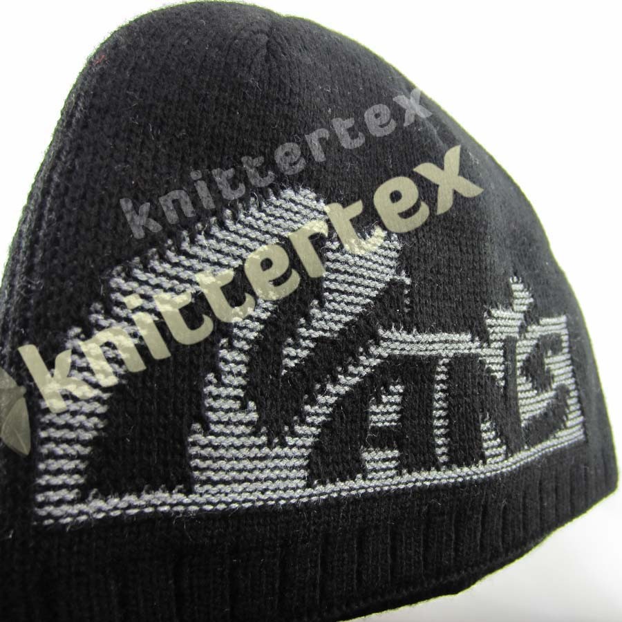 3D Like Knit Text Patterned Black Beanie