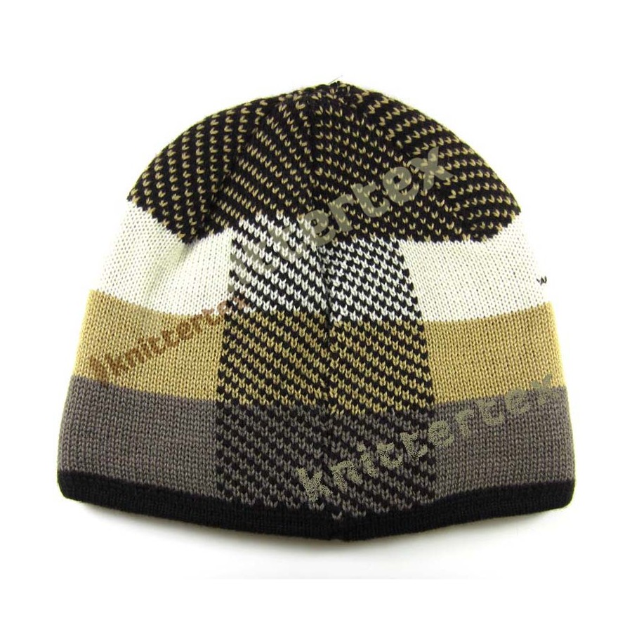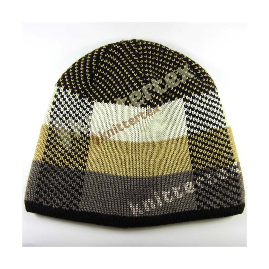 6 Panels, Jacquard Beanie with Multi Colored, Thick Stripes