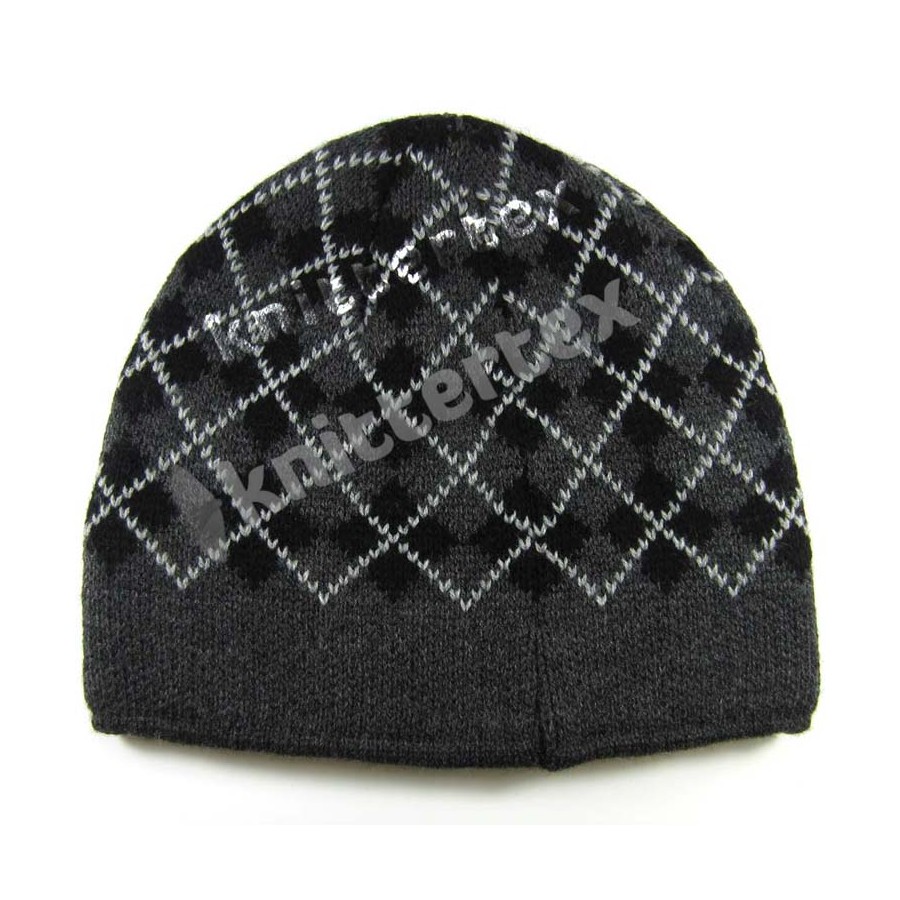6 Panels, Melange Gray, Jacquard Beanie with Diamond Pattern